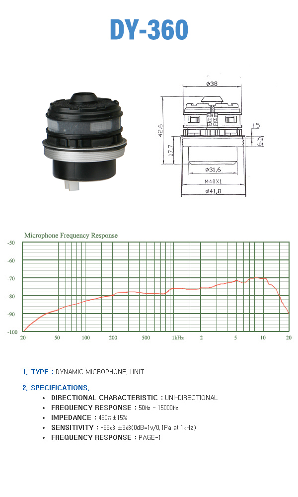 TYPE : Dynamic microphone. unit